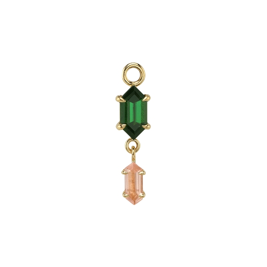 Pictured in yellow gold with Green Tourmaline and Rose Quartz