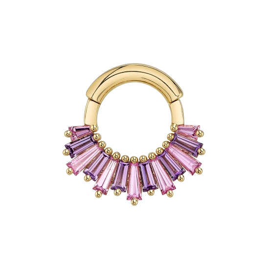 Pictured with a 10GA hinge in yellow gold with Light Pink Sapphires and Light Amethyst