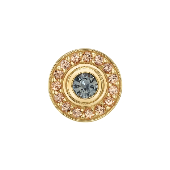 Pictured in yellow gold with Chatham Champagne Sapphires and Grey Sapphire