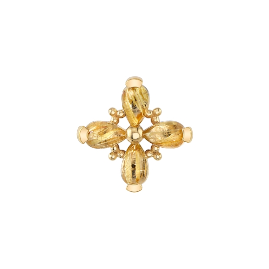 Pictured in yellow gold with Golden Rutilated Quartz cabochons