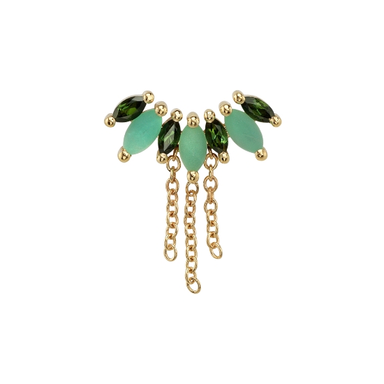 Pictured in yellow gold with sandblasted Chrysoprase and Green Tourmaline