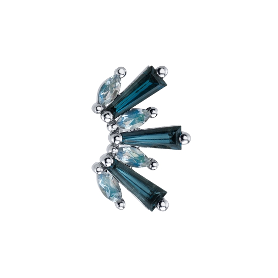 White gold with faceted Rainbow Moonstone and London Blue Topaz