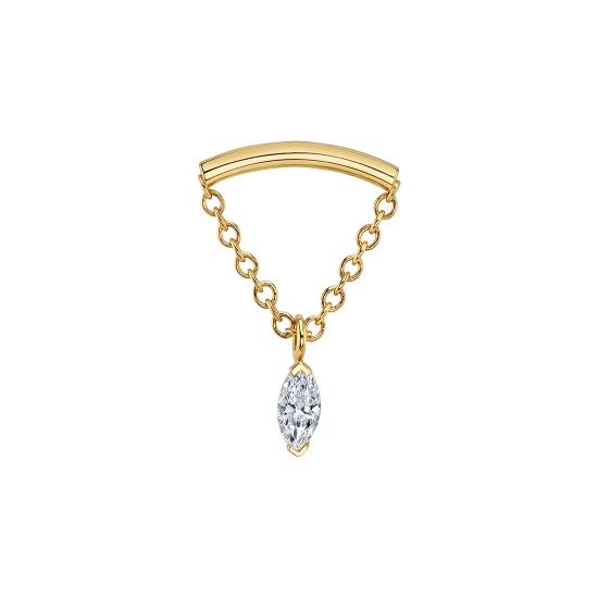 Threaded curved bar with 1mm cable chain and movable 4x2mm Marquise V-Prong charm