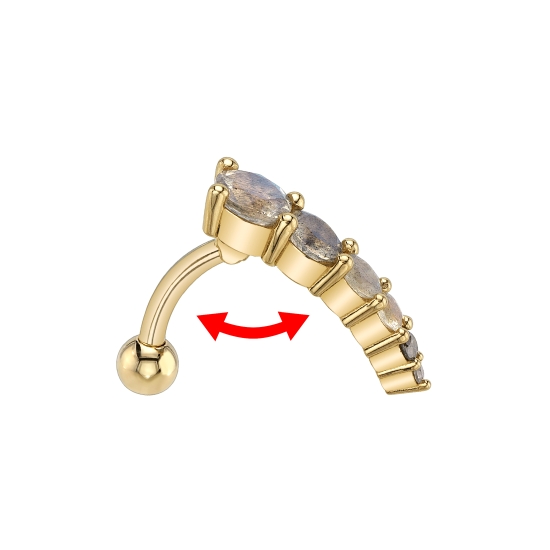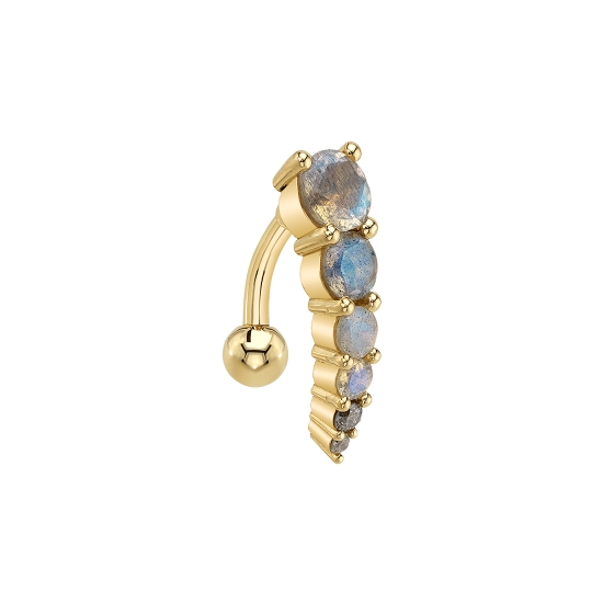 Pictured in yellow gold with faceted Labradorite and Grey Diamonds