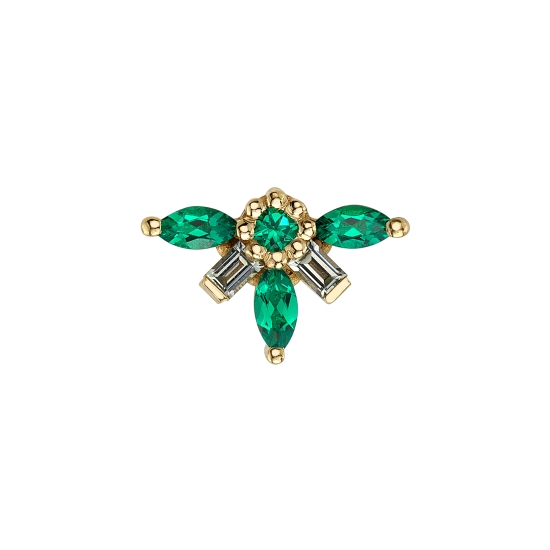 Yellow gold with Grey Sapphires and Chatham Emeralds