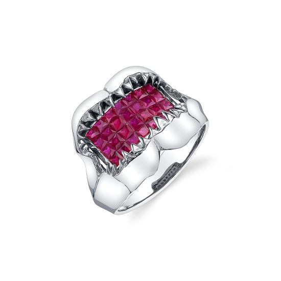 17x19mm shark mouth with 2mm mirage set princess cut Rubies