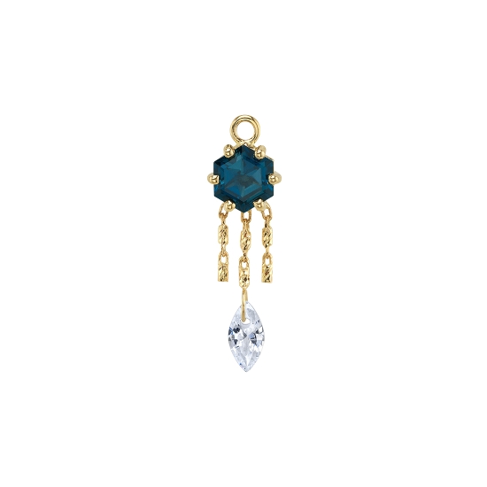 Pictured in yellow gold with a 5mm London Blue Topaz hexagon and a 6x3mm CZ marquise