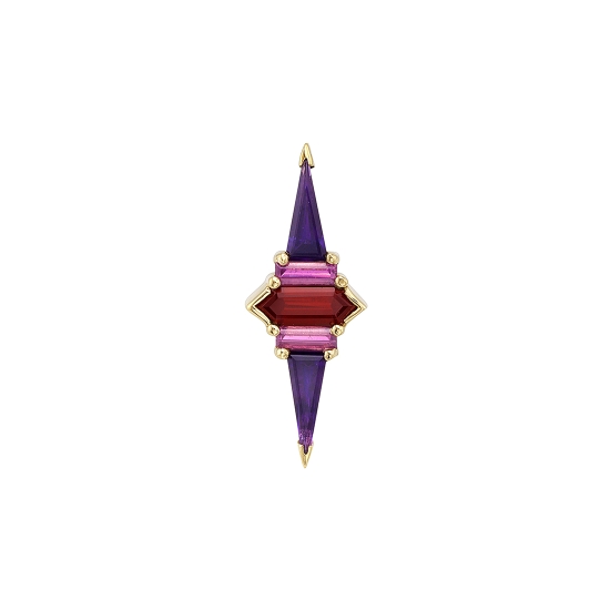 Pictured in yellow gold with Garnet, Rhodolite, and Amethyst