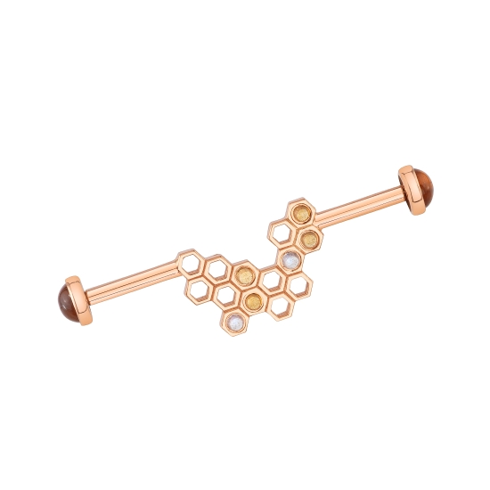 Pictured in rose gold with Rainbow Moonstone and Citrine cabochons