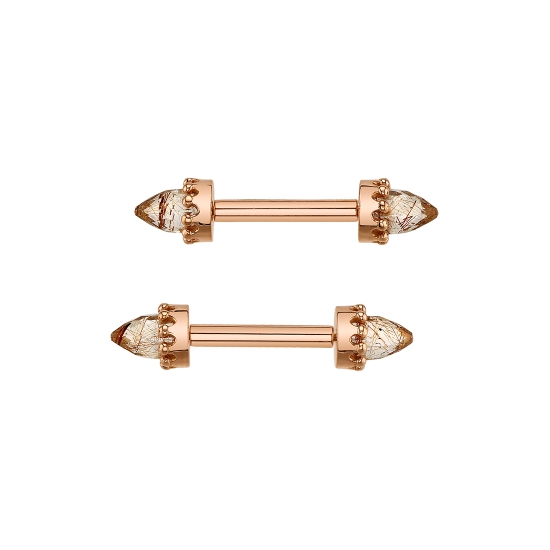 Threadless straight barbell with 6mm bullet crown ends - 4x6mm gems