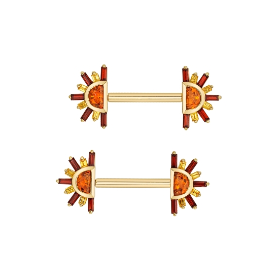 Pictured in yellow gold with Madeira Citrine, Citrine, and Garnet
