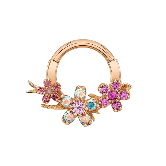 Hinge ring with Cherry Blossom Cluster with Florentine finish on branches