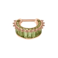 Pictured in rose gold with a straight hinge, round Peridot cabochons, and faceted Peridot baguettes